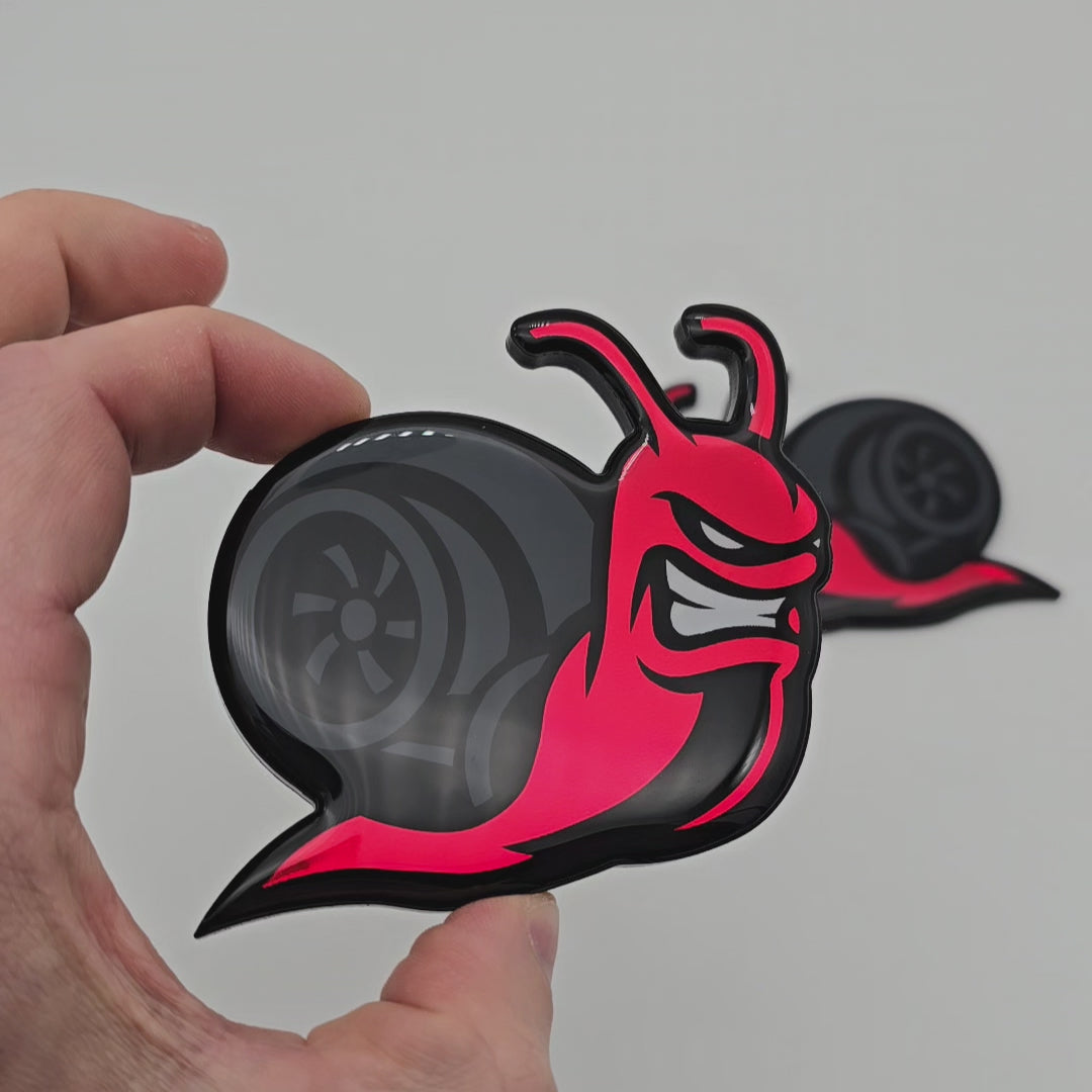 Rev up your ride with the "Hell Snail" Turbo-Shell Fender Badge.